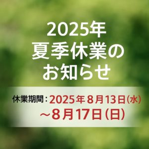 誠に勝手ながら、下記の期間を夏季休業とさせていただきます。